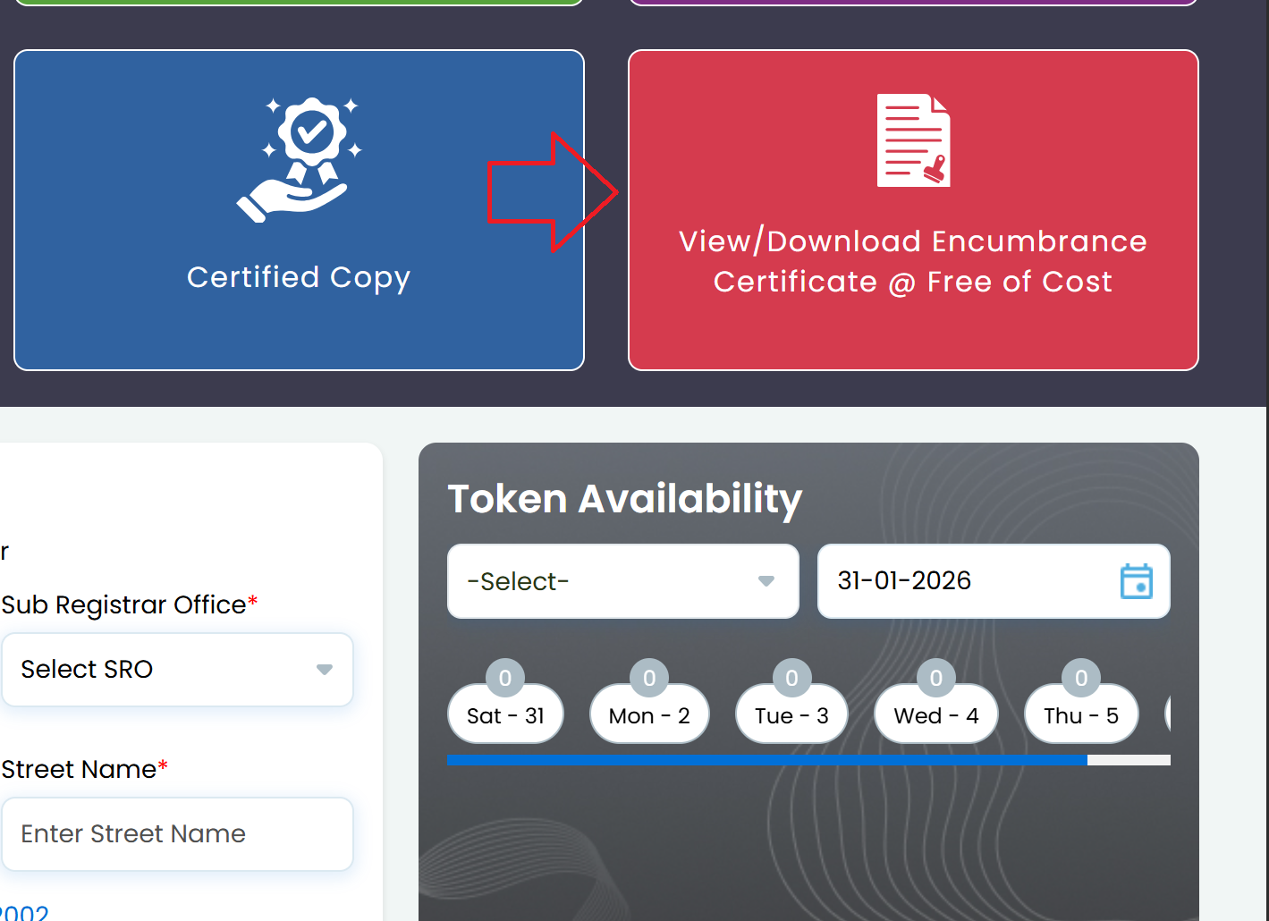 • Download and View EC: Go to "E-Services" > "Encumbrance Certificate" > "Request List." Download the PDF, it's valid for official use without printing.